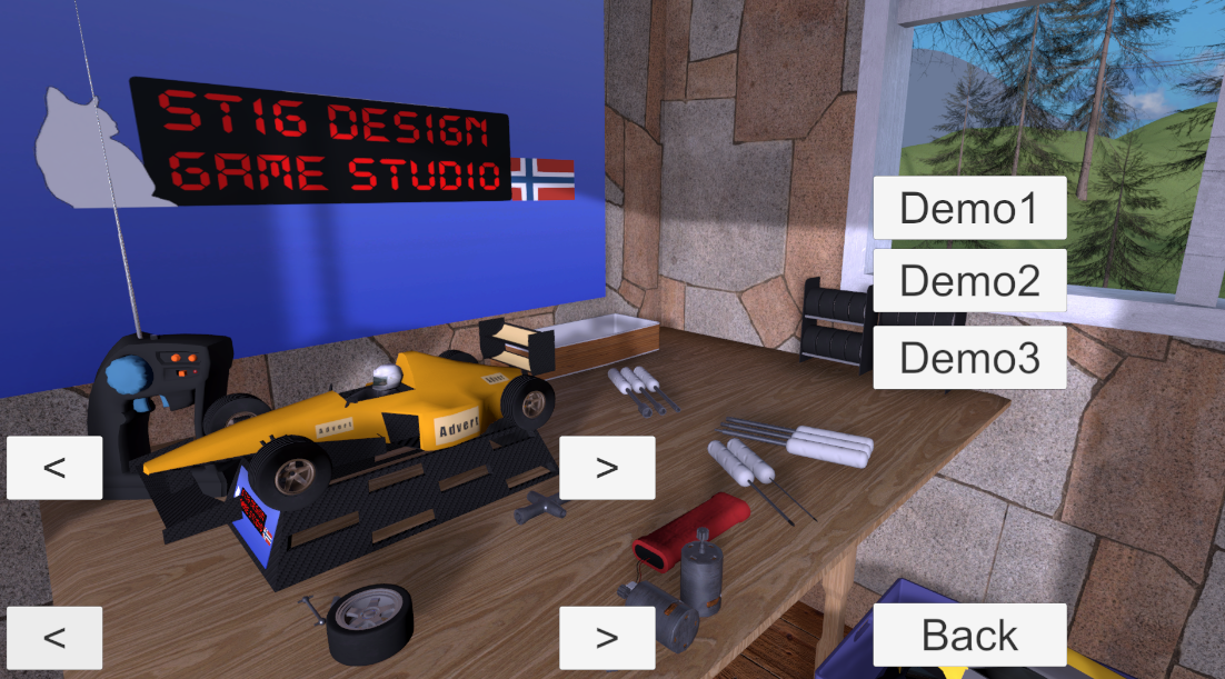 This indev Demo has 3 Tracks and 14 Cars(Multiple Styles/Brands).
